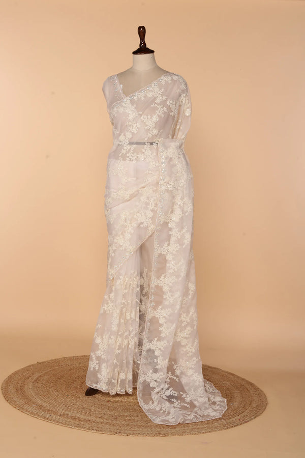 Powder Pink Soft Organza Saree with Chikankari & Self Sequin Border