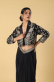 Black golden embroidered raw silk balzer paired with lycra skirt