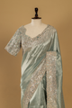 Greyish Blue Zari tissue sequence saree paired with stitched blouse