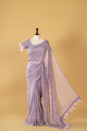 Lilac Tissue embroidered saree paired with feather detailing blouse