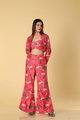 Raani pink multicolour printed pants & jacket paired with embroidered bustier