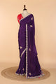 Abutai silk saree - A regal purple saree with a bold coral blouse,detailed with exquisite zardosi and sequence work in border and butti's paired with a unstitched blouse.