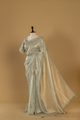Sea green tissue sequence embroidery saree paired with embroidered stitched blouse