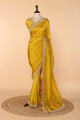 Abutai silk saree - Yellow adorned with zardosi,sequence,french knot and moti work paired with unstitched blouse.