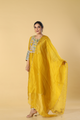 Yellow chandari dori embroidered suit paired with pants & banarasi organza dupatta